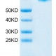 The protein has a predicted MW of 69.5 kDa. Due to glycosylation, the protein migrates to 70-80 kDa based on Tris-Bis PAGE result.