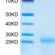 The protein has a predicted MW of 21.14 kDa. Due to glycosylation, the protein migrates to 50-65 kDa based on Tris-Bis PAGE result.