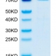 The protein has a predicted MW of 59.09 kDa. Due to glycosylation, the protein migrates to 65-75 kDa based on Tris-Bis PAGE result.