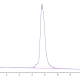 The protein has a predicted MW of 28.2 kDa. Due to glycosylation, the protein migrates to 50-70 kDa based on Tris-Bis PAGE result.