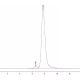 The protein has a predicted MW of 87.6 kDa, Due to glycosylation, the protein migrates to 110-130 kDa based on Tris-Bis PAGE result.