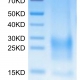 The protein has a predicted MW of 44.2 kDa. Due to glycosylation, the protein migrates to 54-65 kDa based on Tris-Bis PAGE result.