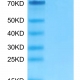 The protein has a predicted MW of 26.7 kDa. Due to glycosylation, the protein migrates to 35-43 kDa based on Tris-Bis PAGE result.