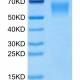 The protein has a predicted MW of 46 kDa. Due to glycosylation, the protein migrates to 50-52 kDa based on Tris-Bis PAGE result.