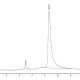 The protein has a predicted MW of 72.76 kDa. Due to glycosylation, the protein migrates to 120-200 kDa based on Tris-Bis PAGE result.