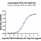 The protein has a predicted MW of 24.84 kDa. Due to glycosylation, the protein migrates to 38-45 kDa based on Tris-Bis PAGE result.