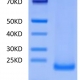 The protein has a predicted MW of 52.27 kDa. Due to glycosylation, the protein migrates to 60-70 kDa based on Tris-Bis PAGE result.