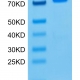 The protein has a predicted MW of 39.20 kDa. Due to glycosylation, the protein migrates to 53-63 kDa based on Tris-Bis PAGE result.