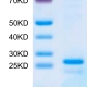 The protein has a predicted MW of 27.49 kDa. Due to glycosylation, the protein migrates to 38-55 kDa based on Tris-Bis PAGE result.