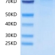 The protein has a predicted MW of 36.52 kDa. Due to glycosylation, the protein migrates to 50-60 kDa based on Tris-Bis PAGE result.