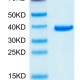 The protein has a predicted MW of 26.87 kDa. Due to glycosylation, the protein migrates to 42-52 kDa based on Tris-Bis PAGE result.