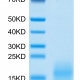 The protein has a predicted MW of 36.9 kDa. Due to glycosylation, the protein migrates to 60-68 kDa based on Tris-Bis PAGE result.