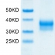 The protein has a predicted MW of 42 kDa. Due to glycosylation, the protein migrates to 52-70 kDa based on Tris-Bis PAGE result.