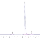 The protein has a predicted MW of 54.14 kDa. Due to glycosylation, the protein migrates to 70-100 kDa based on Tris-Bis PAGE result.