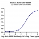 The protein has a predicted MW of 41.6 kDa. Due to glycosylation, the protein migrates to 50-60 kDa based on Tris-Bis PAGE result.