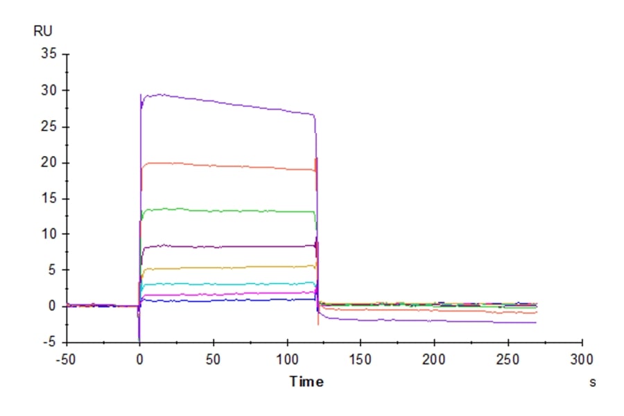 Immobilized Human Nectin-2, His Tag at 2ug/ml (100ul/well) on the plate. Dose response curve for Human PVRIG, mFc Tag with the EC50 of 0.15ug/ml determined by ELISA (QC Test). The affinity constant of 1.84 uM as determined in SPR assay (Biacore T200). See testing image for detail.