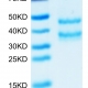 The protein has a predicted MW of 48.9 kDa. Due to glycosylation, the protein migrates to 49-60 kDa based on Tris-Bis PAGE result.
