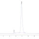The protein has a predicted MW of 258 kDa. Due to glycosylation, the protein migrates to 260-265 kDa under Non reducing (N) condition based on Tris-Bis PAGE result.