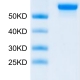 The protein has a predicted MW of 43.20 kDa. Due to glycosylation, the protein migrates to 53-63 kDa based on Tris-Bis PAGE result.