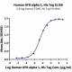 The protein has a predicted MW of 57.9 kDa. Due to glycosylation, the protein migrates to 90-130 kDa based on Tris-Bis PAGE result.