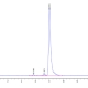 The protein has a predicted MW of 70.40 kDa. Due to glycosylation, the protein migrates to 90-110 kDa based on Tris-Bis PAGE result.