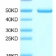 The protein has a predicted MW of 32.7 kDa. Due to glycosylation, the protein migrates to 37-40 kDa based on Tris-Bis PAGE result.
