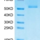 The protein has a predicted MW of 33.1 kDa. Due to glycosylation, the protein migrates to 50-65 kDa based on Tris-Bis PAGE result.