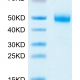 The protein has a predicted MW of 125.4 kDa. Due to glycosylation, the protein migrates to 160-180 kDa based on Tris-Bis PAGE result.