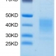 The protein has a predicted MW of 84.7 kDa. Due to glycosylation, the protein migrates to 85-110 kDa based on Tris-Bis PAGE result.