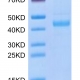 The protein has a predicted MW of 47.9 kDa. Due to glycosylation, the protein migrates to 52-65 kDa based on Tris-Bis PAGE result.