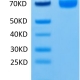 The protein has a predicted MW of 98.8 kDa. Due to glycosylation, the protein migrates to 145-150 kDa based on Tris-Bis PAGE result.