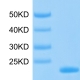 The protein has a predicted MW of 25.7 kDa. Due to glycosylation, the protein migrates to 26-30 kDa based on Tris-Bis PAGE result.