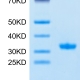 The protein has a predicted MW of 33.82 kDa same as Tris-Bis PAGE result.