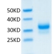 The protein has a predicted MW of 26.15 kDa. Due to glycosylation, the protein migrates to 35-45 kDa based on Tris-Bis PAGE result.